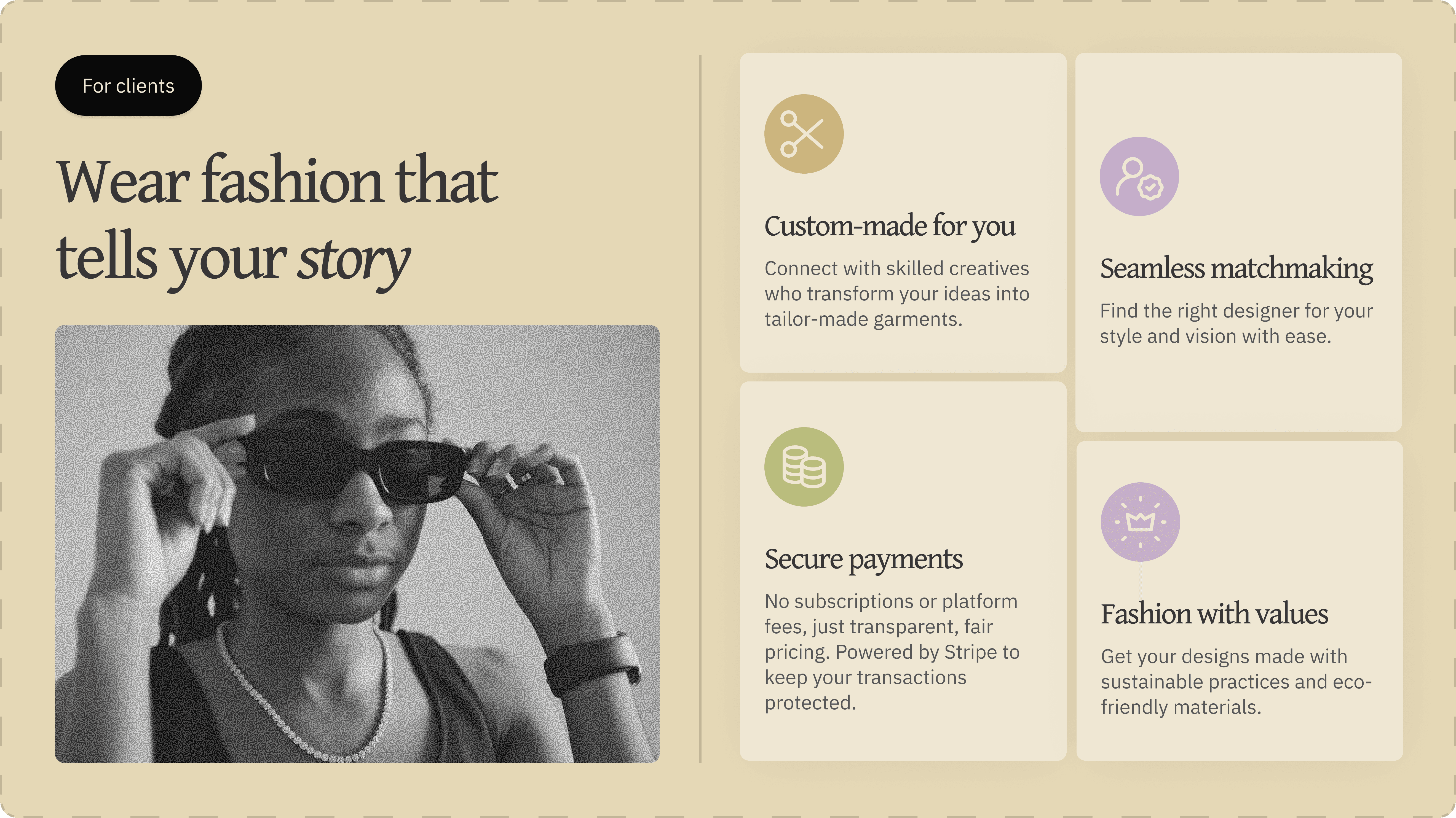 Share your vision — we’ll match you with the perfect designer to bring it to life. Tell us what you’re dreaming of , from style and fabric to fit and budget — and we’ll connect you with an independent designer who can make it real.